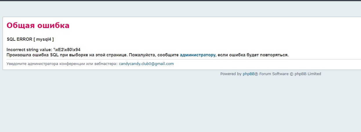 По виду ошибки, я не могу сказать, в чем проблема, это какая-то общая формулировка. Наверное надо обновить phpBB, но это довольно глобально, потому что давно ничего не обновляли и я боюсь, что все сломается