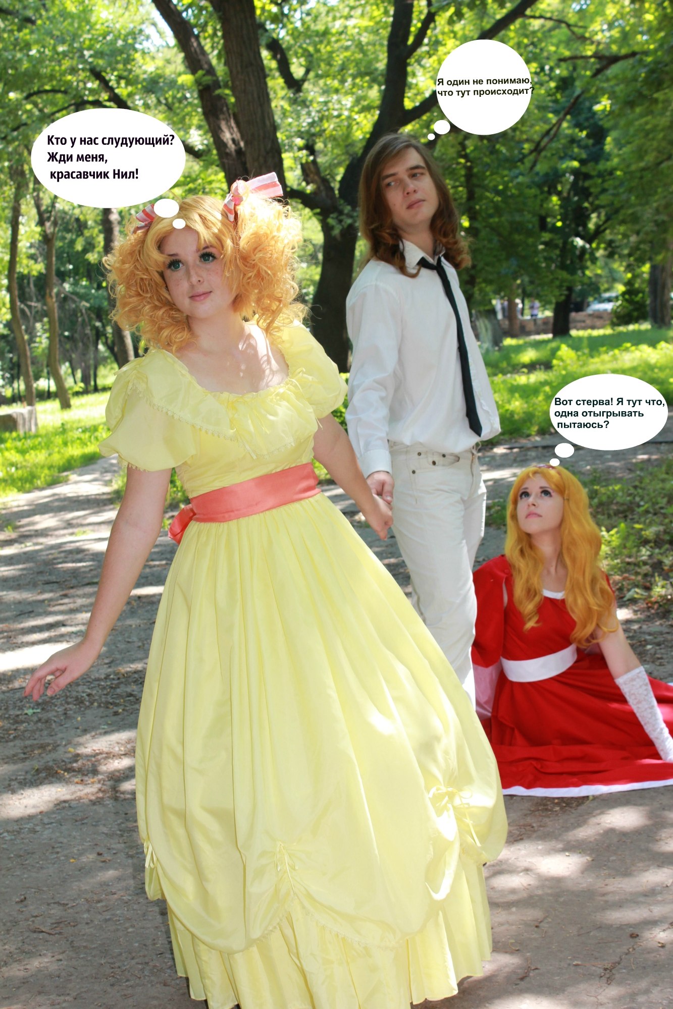 Это были чумовые выходные! Анни наконец почувствовала себя Кенди, а Кенди - Сюзанной! За подогнаный образ ОГРОМНЕЙШЕЕ СПАСИБО все той-же моей ненаглядной Кенди. На самом деле мы упарывались, как могли. Но, несмотря на то, что Терри был собран за полчаса до фотосета, у Анни не сходилось платье на груди и постоянно виднелся бюст, а у Сюзанны все время спрашивали "Почему ты ходишь?", и Терри выдал "Почему ты не прихрамываешь?", нам удалось отснять радостные и трогательные моменты. Самые эпичные моменты упоротости - фотограф узнал всю правду о концовке аниме, вредный друг Терри помогал застегнуть платье Кенди, кадр поцелуя Кенди и Терри, кадр поцелуя Терри и Сюзанны ну и еще много чего.