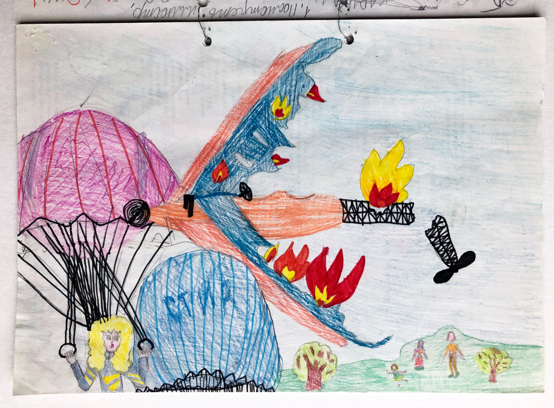 Итак, сложный момент, но не нарисовать его я не могла. Стир построил самолёт и предложил ребятам полетать вместе с ним. Если я правильно помню, остальные не решились, а вот Кенди согласилась. И... самолёт рухнул. Хорошо, что у них были парашюты. Хотя, если я не ошибаюсь, летали они не очень высоко, и вообще-то парашюты не должны были успеть раскрыться... Не знаю. Но рисовать всякую технику и механизмы мне всегда нравилось, и вот что получилось.