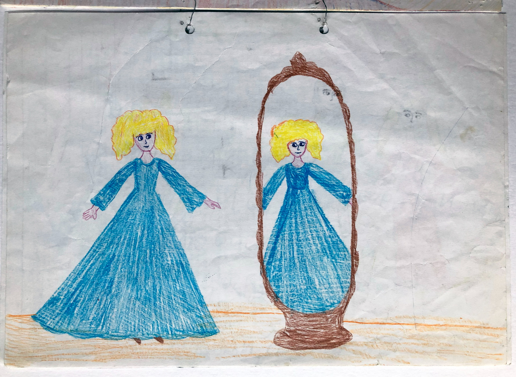 Это не совсем полноценный рисунок. Он сделан на обороте другого рисунка. Тут просто Кенди смотрится в зеркало. Откуда взялся сюжет - не знаю. Кажется, она так основательно смотрелась в зеркало только перед торжественным ужином в честь приёма её в семью Ардли, когда её облачили в тёмно-зелёное платье... Но я не могла помнить этот момент, я ведь пропустила почти половину серий. Возможно, это просто моя фантазия. И кстати, в деталях сюжета я могу немного путаться, всё-таки смотрела я серии 20 и 10 лет назад... эхх...